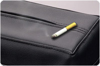 タバコの落下時などに安心の燃えにくい難燃素材のレザー素材。